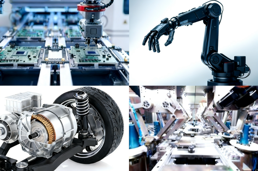 Electronics: PCB assembly fixtures, semiconductor handling, inspection systems.